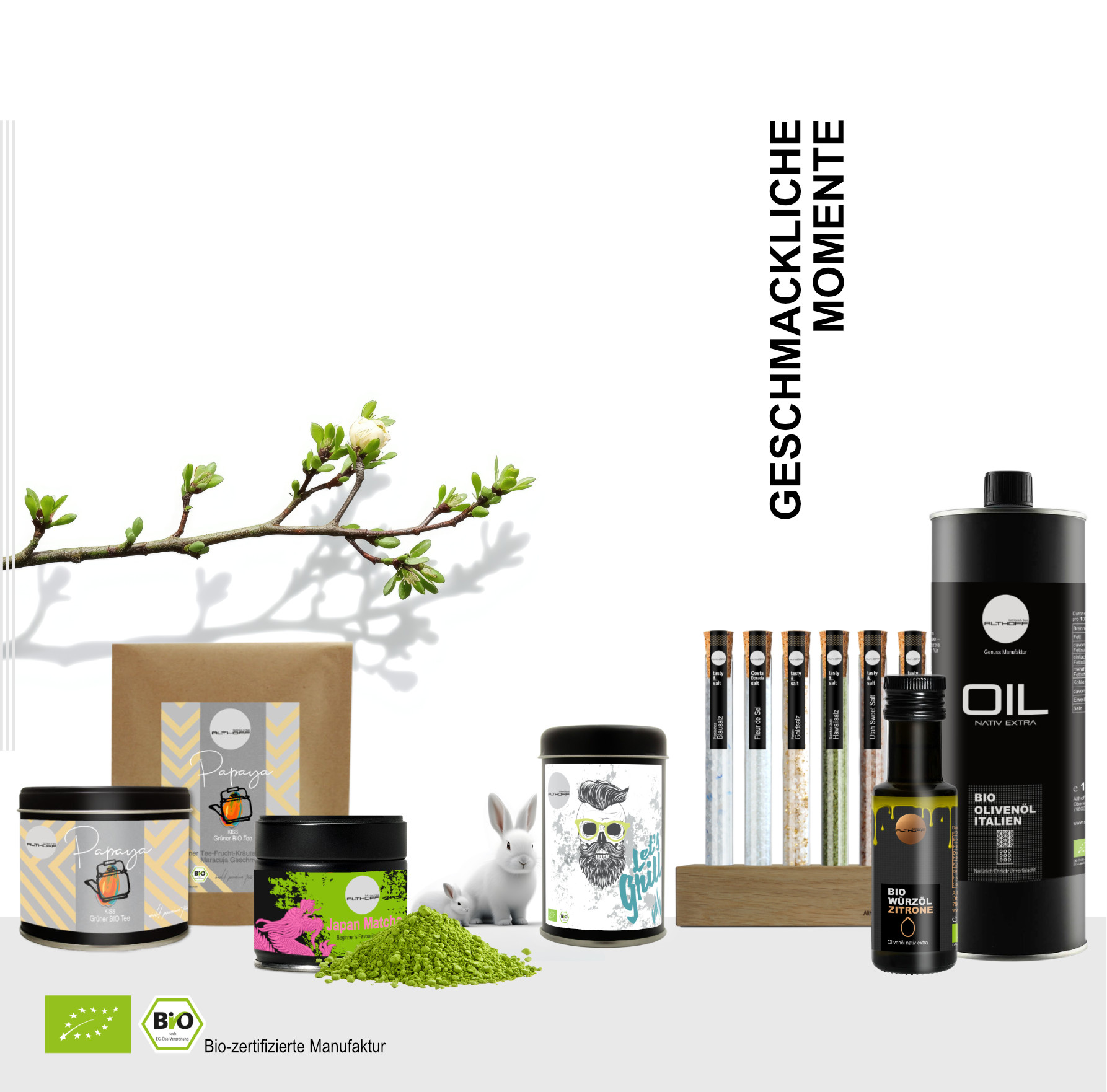 Mit einer Prise Verspieltheit und einer Portion Verrücktheit runden stilvolle Accessoires und ausgewählte Feinkost unser Sortiment ab. Tauche ein in die Welt von Althoff – der Biomanufaktur für Genießer.