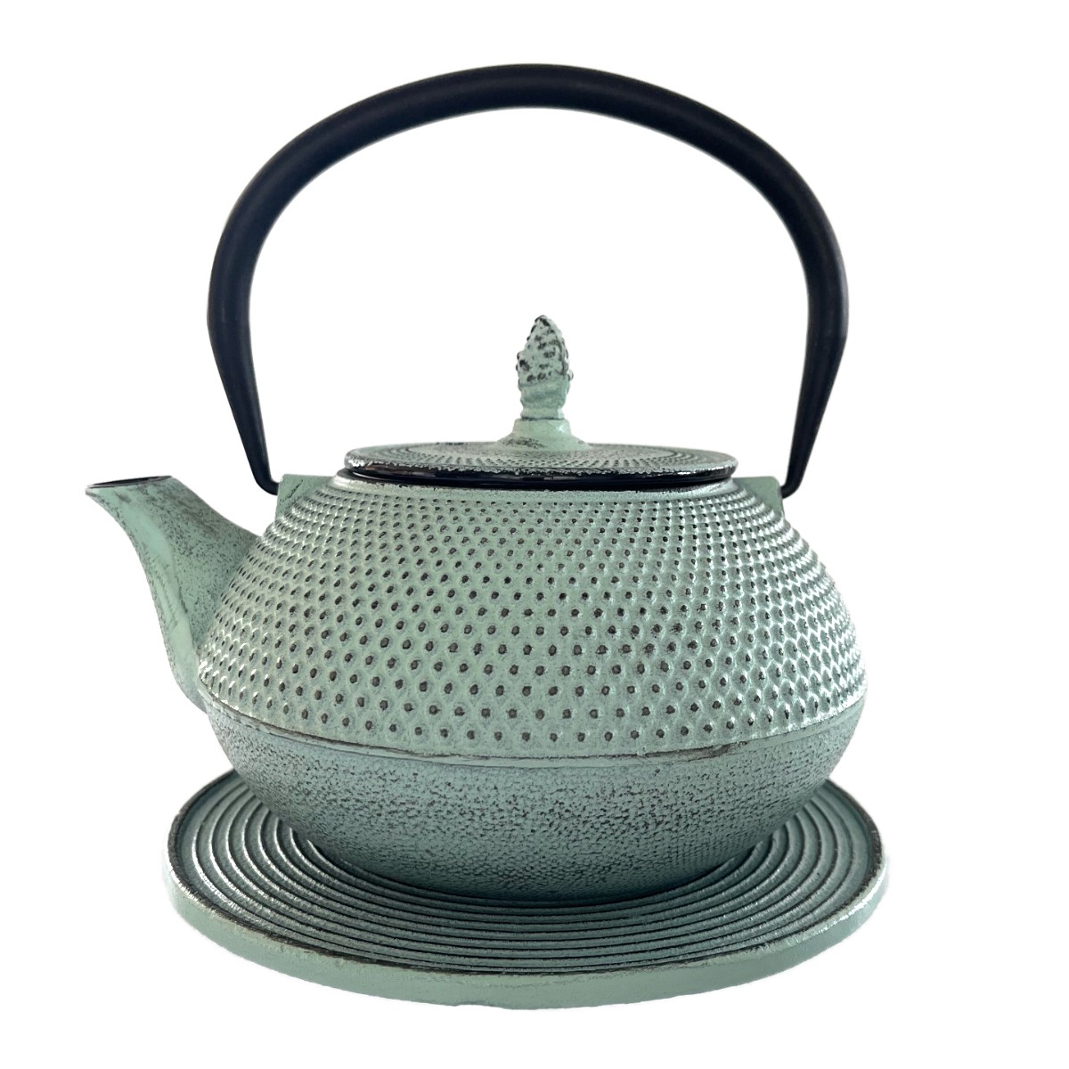 Teekanne Arare Jadeblau–Silbergrau – Handgefertigte Gusseisen-Teekanne im Stil der japanischen Tetsubin